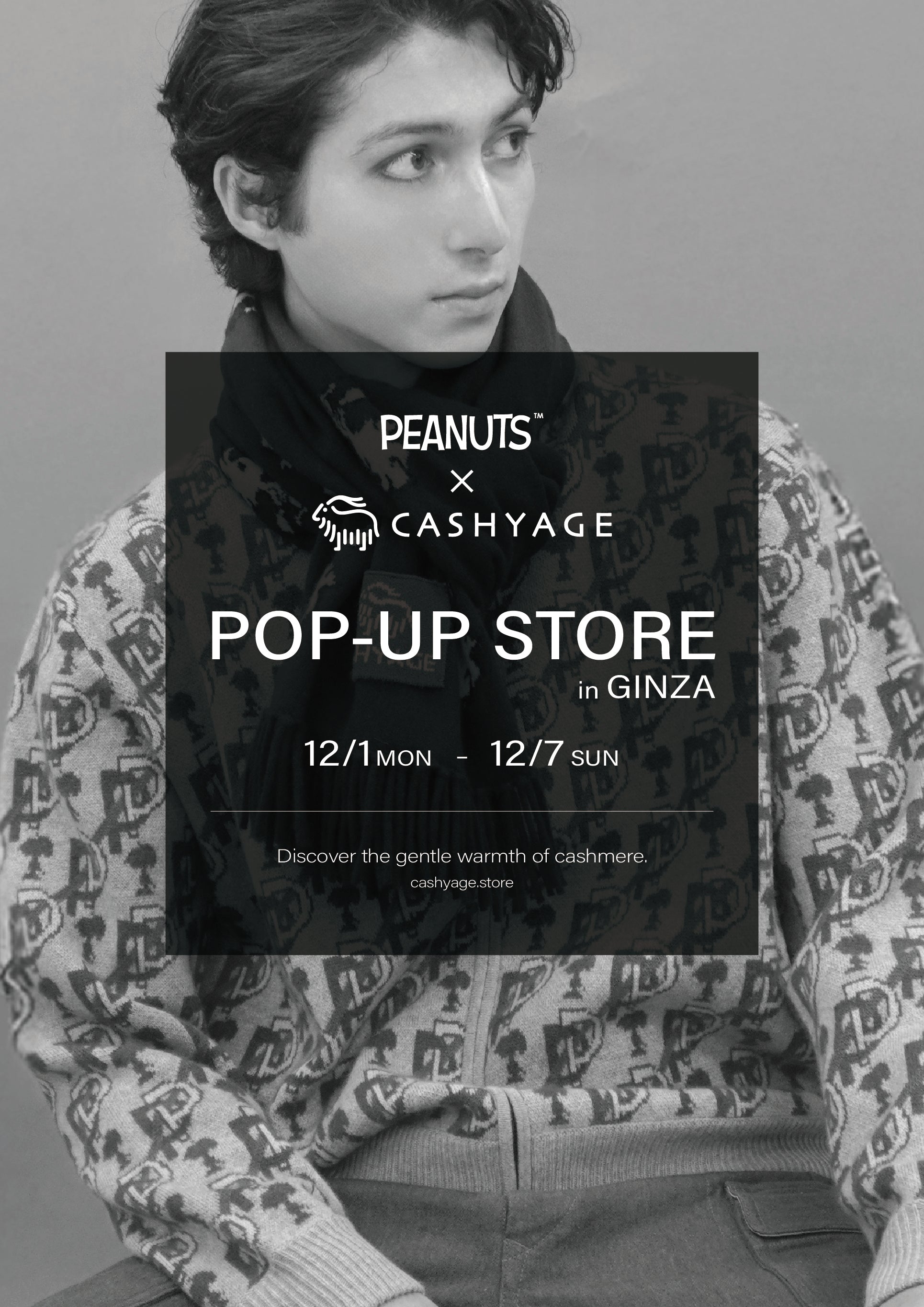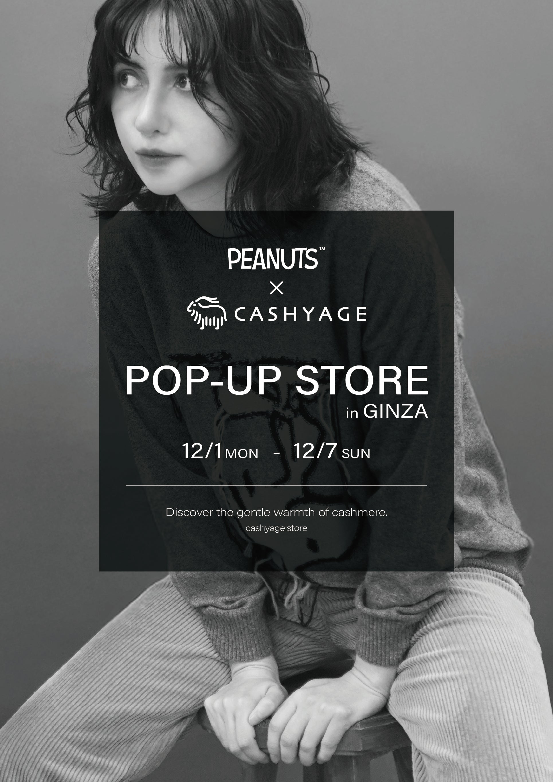 スヌーピーをはじめとする、世界中で愛されている『PEANUTS』と、カシミヤニットブランドであるCASHYAGEのタッグを組み、銀座にてPOP-UP STOREを開催いたします。
