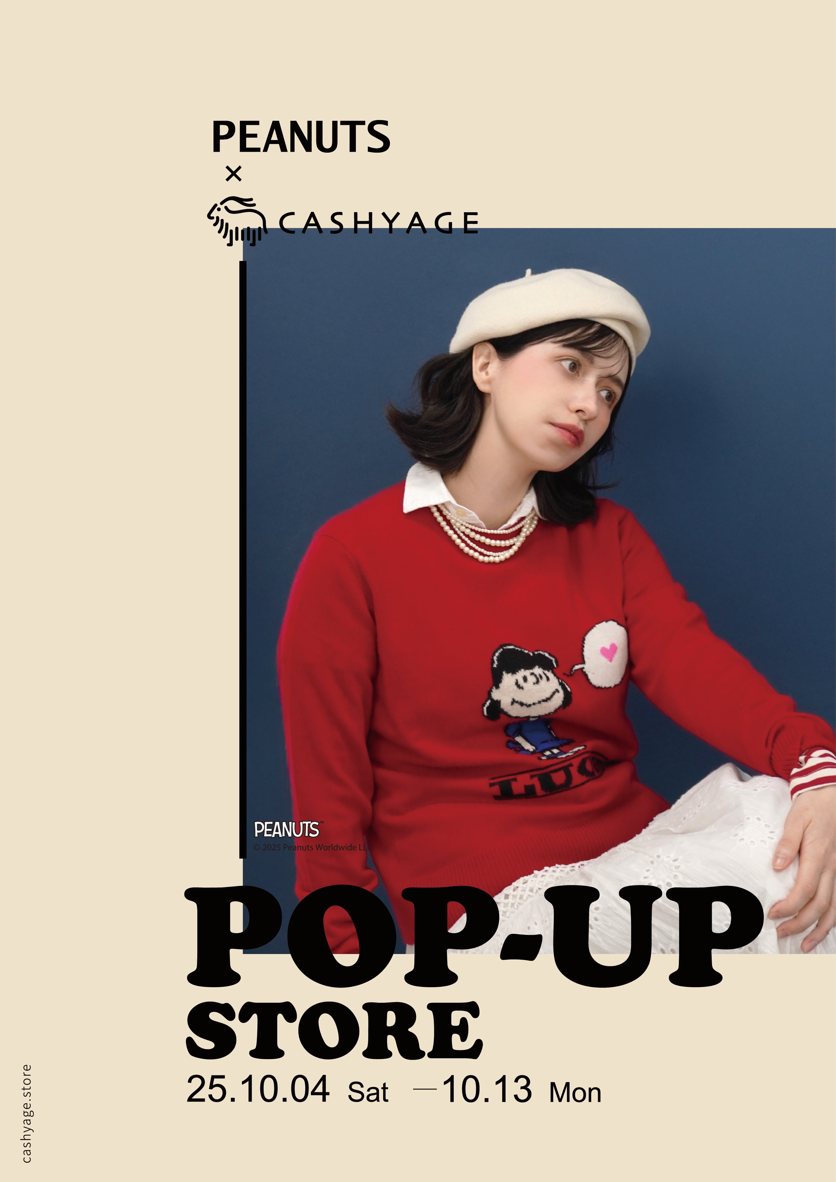 スヌーピーをはじめとする、世界中で愛されている『PEANUTS』と、カシミヤニットブランドであるCASHYAGEのタッグを組み、原宿にてPOP-UP STOREを開催いたします。